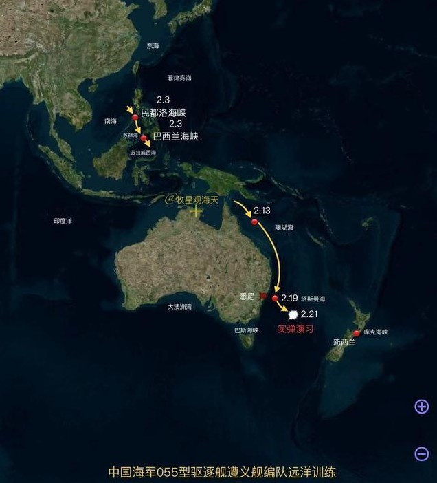从2月19日起,我军的一支055编队连续两天在澳大利亚悉尼外海进行实弹射击,我方演习的位置大概位于悉尼外海150海里处。按照国际惯例,中方舰队处于国际水域内,完全有权举行相关军事演练,而且我们也提前按照国际惯例,通知了周边相关各方,所以我们是有理有据。